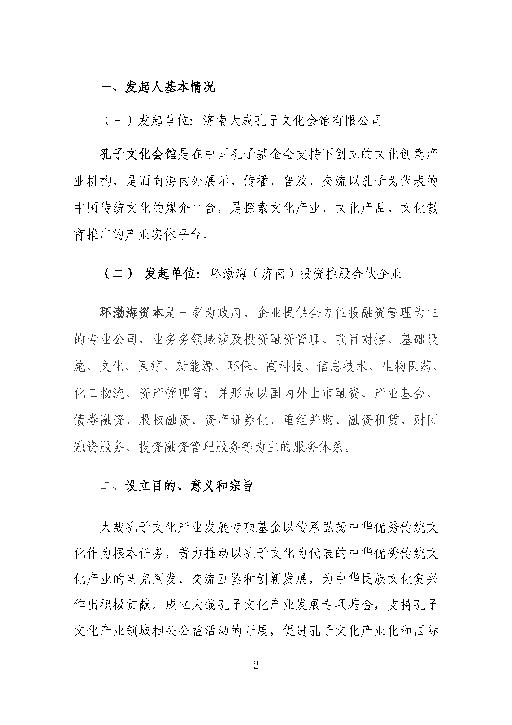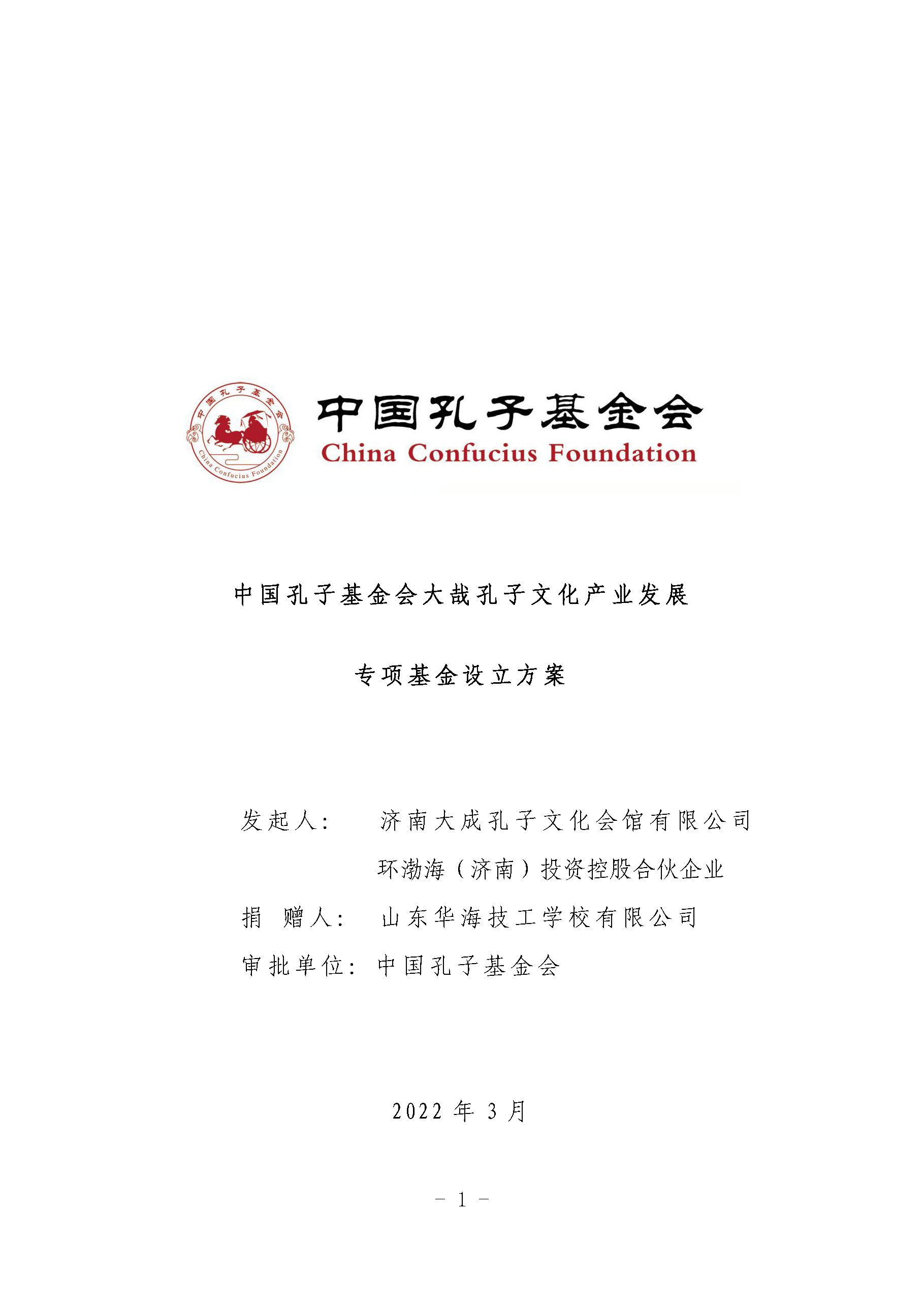中国孔子基金会大哉孔子文化产业发展专项基金设立方案