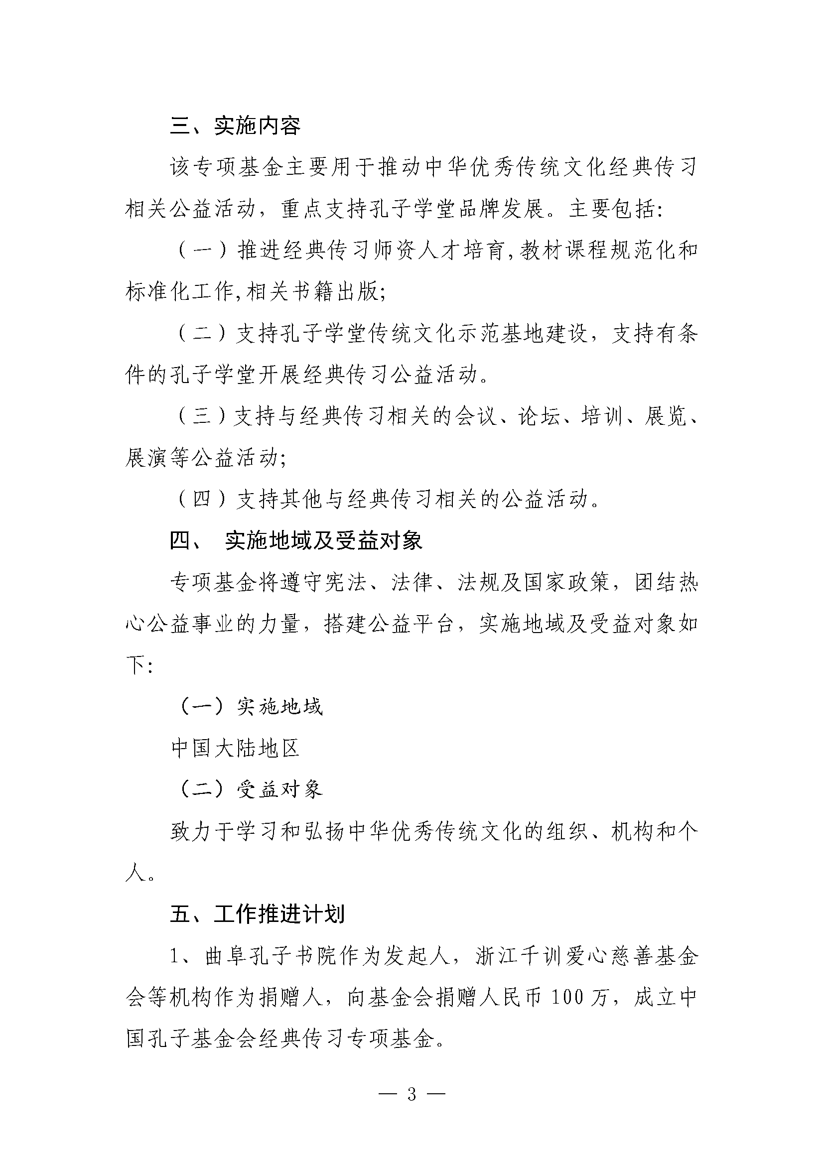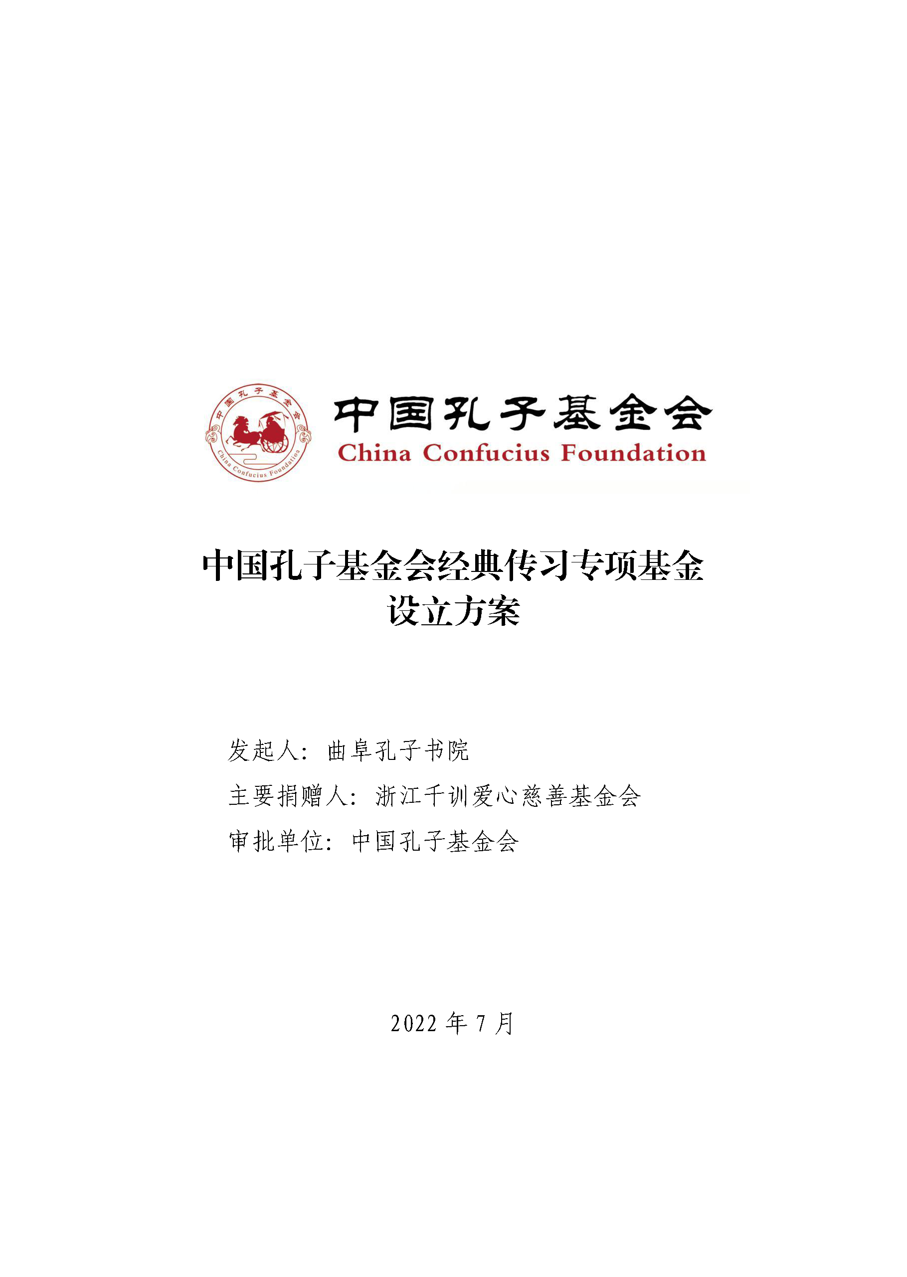中国孔子基金会经典传习专项基金设立方案
