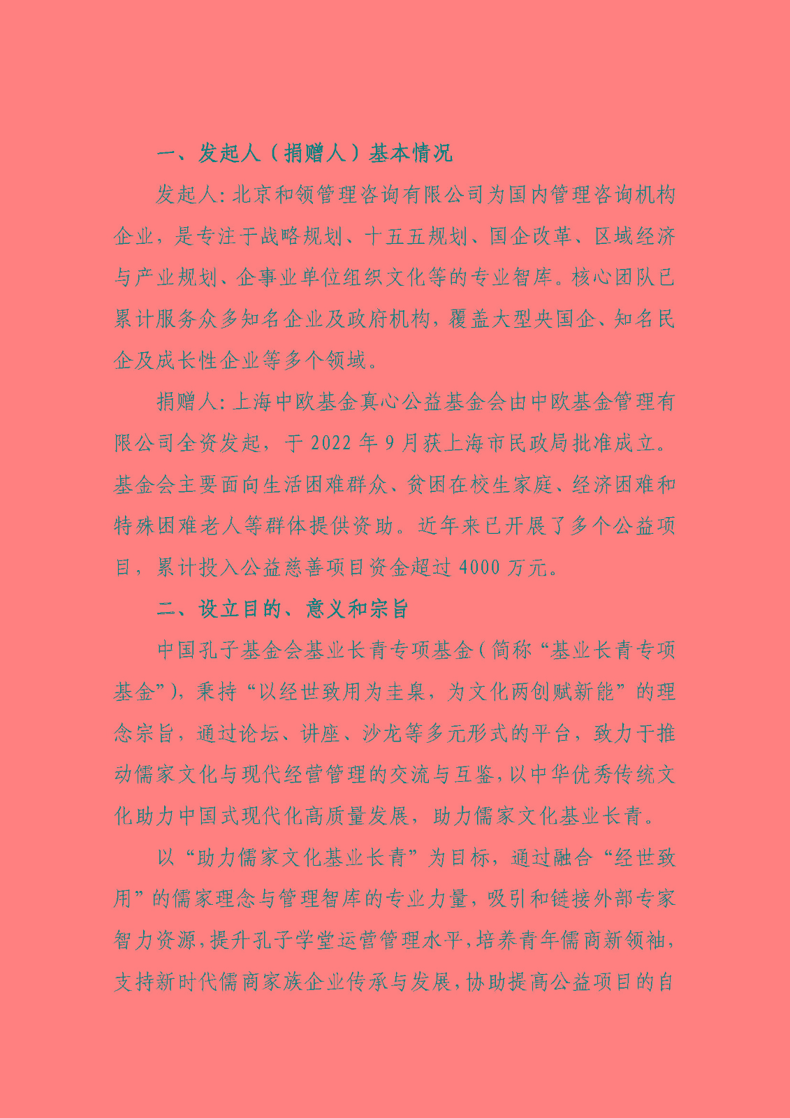 中国孔子基金会基业长青专项基金设立方案