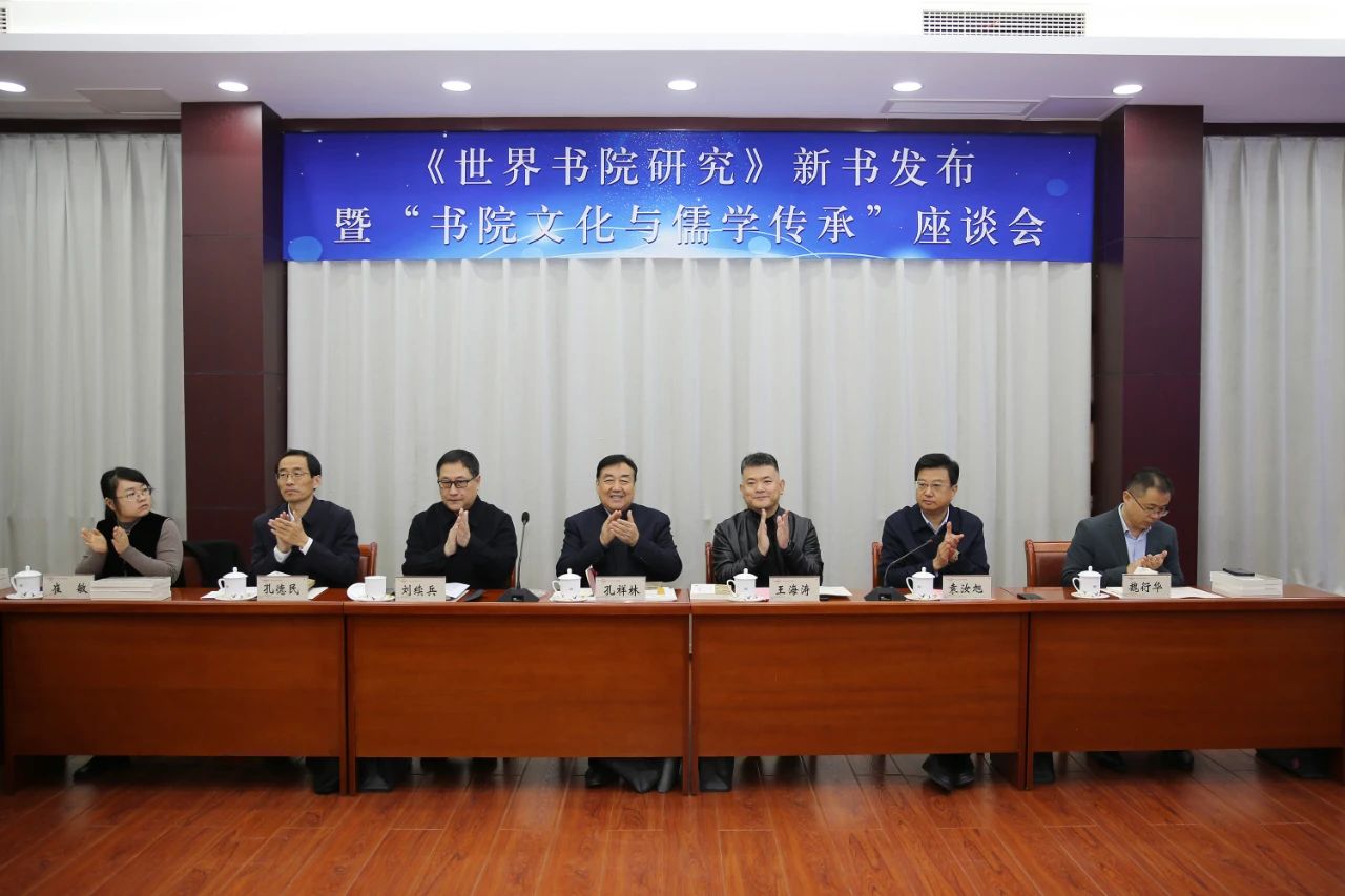 11月21日,《世界书院研究》新书发布暨“书院文化与儒学传承”座谈会在孔子研究院举行。活动特别邀请上海交通大学人文学院讲席教授杨庆存,韩国国立安东大学终身教授、孔子研究院海外儒学研究与传播中心主任李润和,北京语言大学文学院教授、中国屈原学会会长方铭,山东大学儒学高等研究院特聘教授杨朝明,曲阜师范大学孔子文化研究院院长、教授王钧林,曲阜师范大学孔子文化研究院副院长、教授宋立林,中国孔庙保护协会会长、曲阜市文物局党组书记、局长孔德民等参加,湖南大学杰出教授、岳麓书院国学院院长朱汉民通过书面形式发言。孔子研究院副院长、研究员刘续兵和山东人民出版社副总编辑王海涛致辞并为新书揭幕。孔子研究院副院长袁汝旭主持活动。