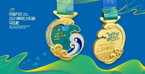 독특한 디자인의 메달은 바다로 흘러 들어가는 황허(黃河)강 강물의 모습을 입체적으로 형상화했다. 앞면에는 습지와 유전으로 포인트를 줌으로써 산둥(山東) 둥잉(東營)시의 특색을 살렸다. 날개를 활짝 펴고 높이 나는 새는 사람과 자연의 조화로운 공존을 의미한다.
