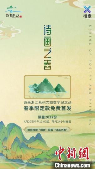 4月19日,记者获悉,由浙江省文化和旅游宣传推广信息中心发行的“诗画浙江”数字纪念品将于4月20日上线,并免费限量发行。