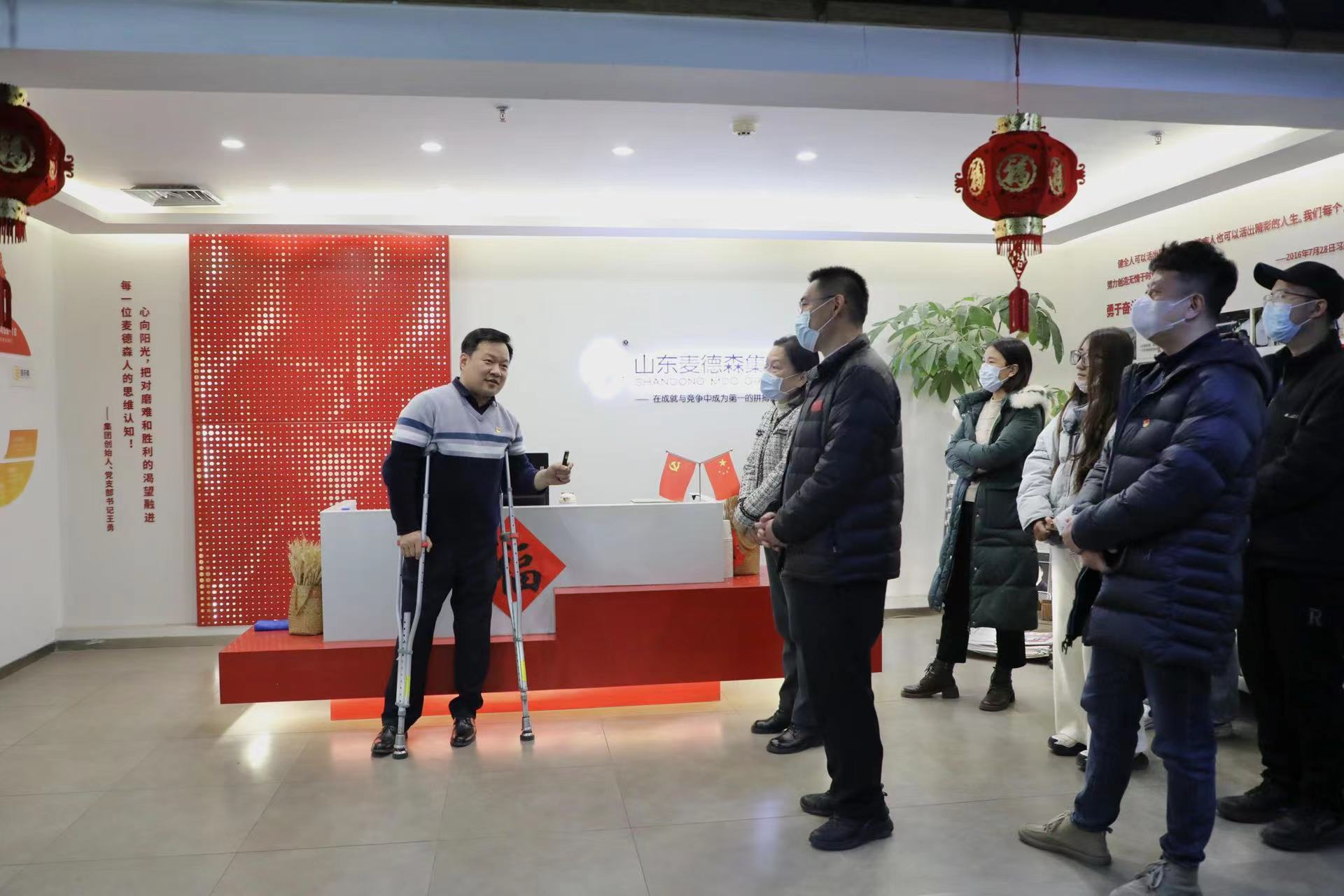 在山东麦德森发展集团党支部书记、董事长王勇的带领下,儒学中心(基金会秘书处)青年理论小组成员实地参观集团党建“红心向党”党建文化长廊、集团党建书屋,深入了解麦德森集团支部“扛着党旗创业,戴着党徽奉献”的党建理念,感受党建赋能企业发展的强大力量。