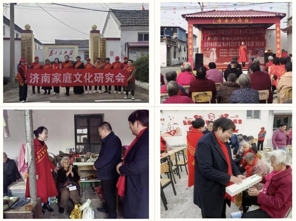 第2289号孔子学堂——焕云孝善文化示范村肥城市汶阳镇北店村,在村书记张金英的支持下,团长宋丰华带领队员为老人赠送礼物后,还举办了重阳节联欢会,戏曲、舞蹈、诗朗诵等节目轮番上演。