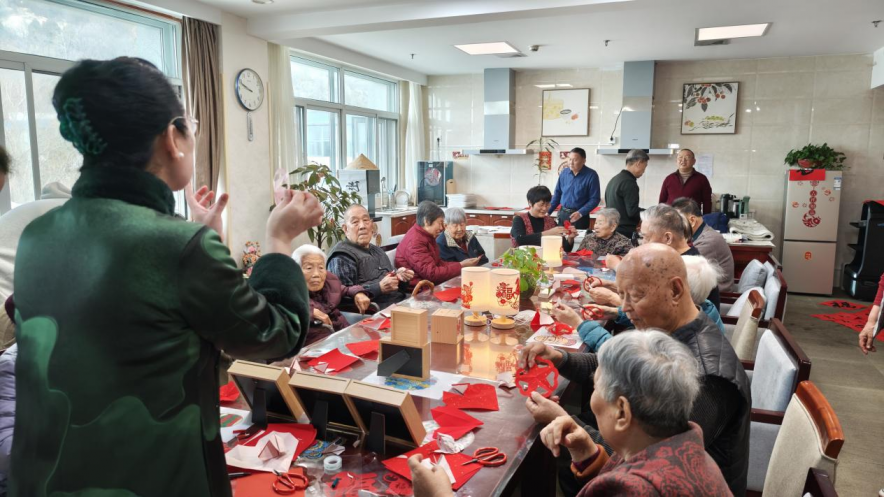 一把剪刀,一张红纸,不仅让老人们体验到了传统非遗的魅力,更让他们在动手创作中收获了快乐与成就感。此次活动以剪纸为媒,将中华优秀传统文化的温暖送进了老人心间,也让“老有所乐、老有所享”的养老理念在指尖生花的美好中得到了生动诠释。