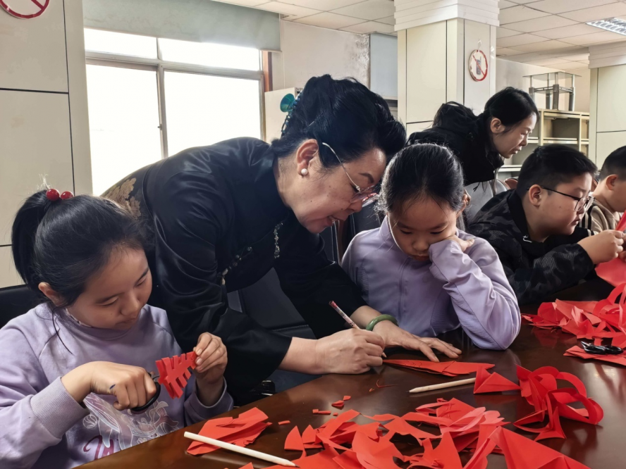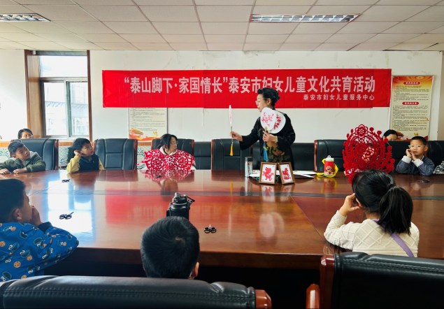 近日,泰安市妇女儿童服务中心在二楼会议室举办 “泰山脚下 家国情长” 文化共育活动,以泰山剪纸为核心主题,邀请泰山剪纸非遗传承人刘伟娟授课,泰山冯玉祥小学孔子学堂纸言剪语志愿服务队全程助力,20 组 5 至 12 岁少年儿童及家长携手体验非遗魅力,在指尖的剪纸创作中感受中华优秀传统文化的独特韵味。