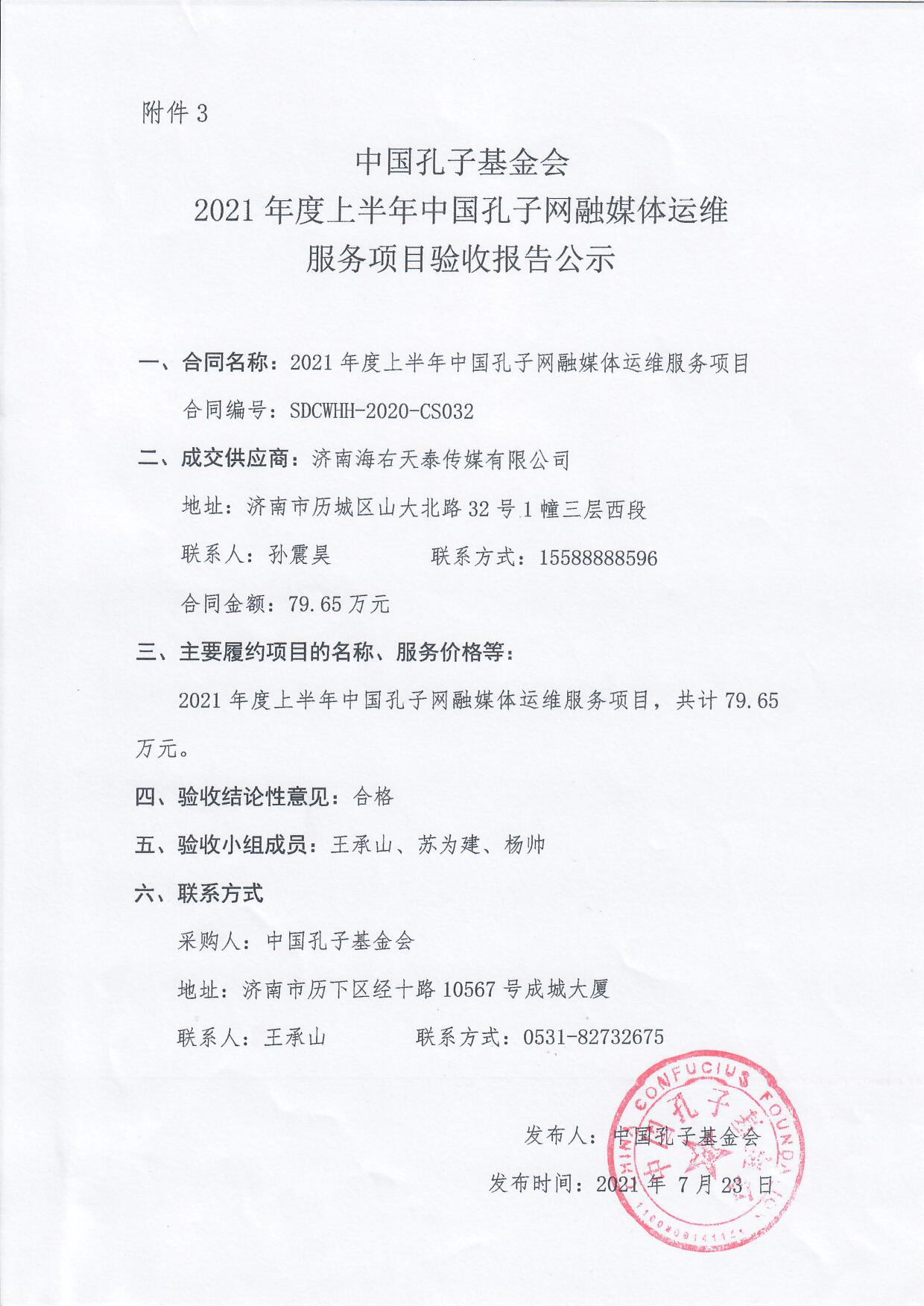 中国孔子基金会2021年度上半年中国孔子网融媒体运维服务项目验收报告公示