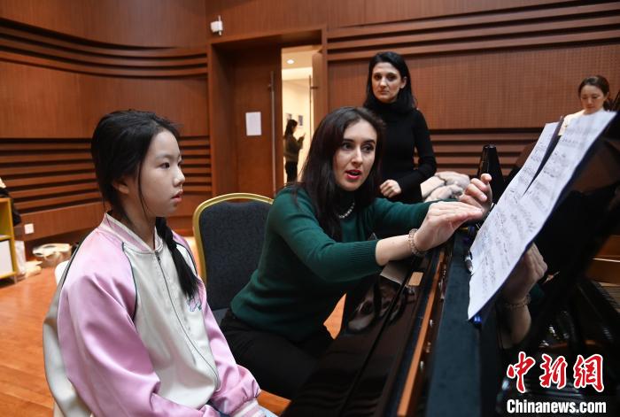 12月10日,在河北省廊坊市丝绸之路国际艺术交流中心的国际课堂,来自罗马尼亚的钢琴家辛兹安娜·米尔切亚正在耐心地指导孩子们的钢琴弹奏技巧。“很开心再次来到丝绸之路国际艺术交流中心,希望通过自己的授课可以让孩子更深刻感受钢琴的美妙,也希望能有更多机会和更多中国朋友进行音乐文化上的沟通与交流。”辛兹安娜·米尔切亚说。