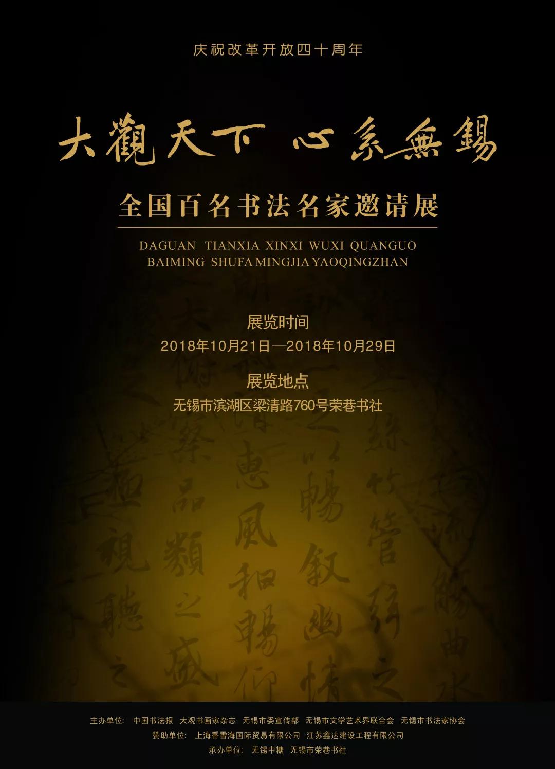经过紧锣密鼓的筹备,2018年10月21日上午“大观天下 心系无锡——全国百名书法名家邀请展”在无锡市荣巷书社隆重开幕!