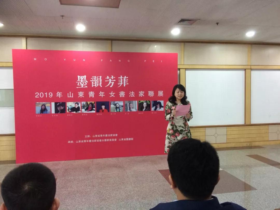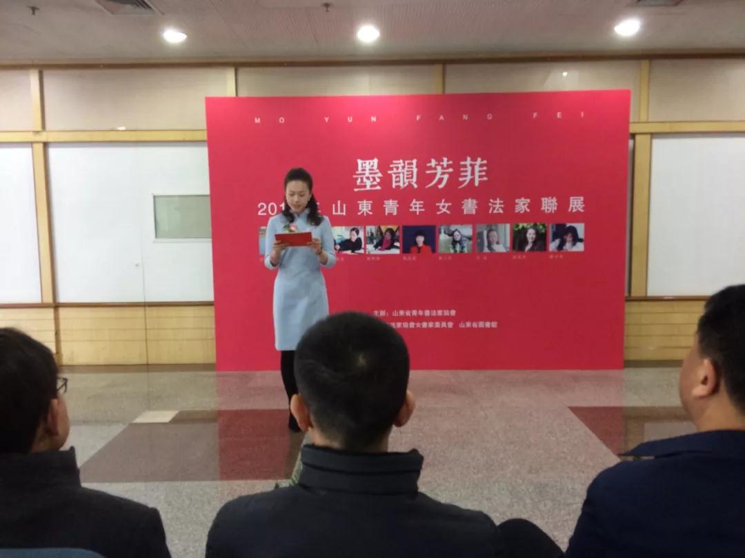 开幕式由山东省青年书法家协会女书家委员会秘书长高远主持。山东省青年书法家协会女书家委员会主任管恩昱代表参展女书家发言。她说,近年来,山东省书法家协会、山东省青年书法家协会加大对女性书法群体的关注与培养,为山东省女性书法事业发展提供了更加广阔的平台。广大女性书法创作者应该抓住机遇,潜心探索,深研传统,锐意创新,努力创作出更多无愧于伟大时代,展现当代女性风貌的精品力作。