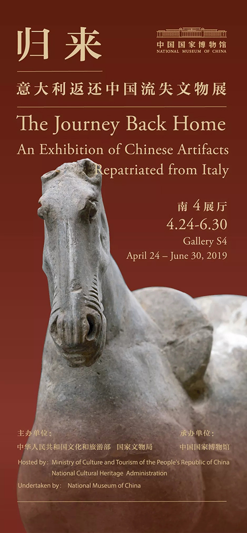 2019年4月24日,“归来——意大利返还中国流失文物展”在中国国家博物馆温暖启幕。展览通过“共同礼敬历史文明”“共创文物追索典范”“共聚文明互鉴之光”三个单元,集中展示意大利向中国返还的796件中国流失文物艺术品。