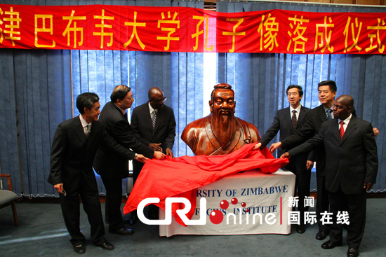 16日,津巴布韦大学阳光明媚,来自万里之遥的一尊孔子半身塑像正式“落户”津大校园,成为该校孔子学院的崭新标志。这尊惟妙惟肖的孔子雕像面容慈祥,目光仁爱,是由到访的山东对外交流协会代表团向津巴布韦大学捐赠的。
