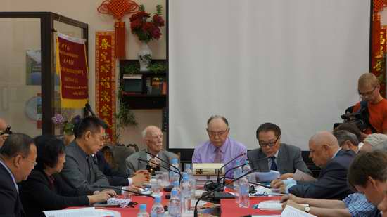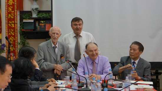 95岁的俄罗斯著名学者、俄中友协名誉主席齐赫文斯基出席会议并发表了热情洋溢的讲话。