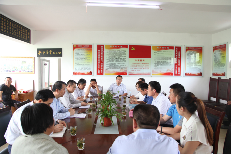 初夏的季节,百草芬芳、百花竞秀。5月15日上午,在青山绿水、瓜菜飘香的济南市历城区西营镇小南营村,中国孔子基金会秘书处召开了秘书处党组中心组理论第五次学习会议,并对小南营村孔子学堂建设实地调研考察。中国孔子基金会秘书处党组成员牛廷涛、邢成湖,副巡视员康承宝及秘书处部室主任,西营镇党委副书记、镇长孙德永,党委副书记李成龙、党委委员王斐等党员干部、小南营的部分党员干部参加了会议。