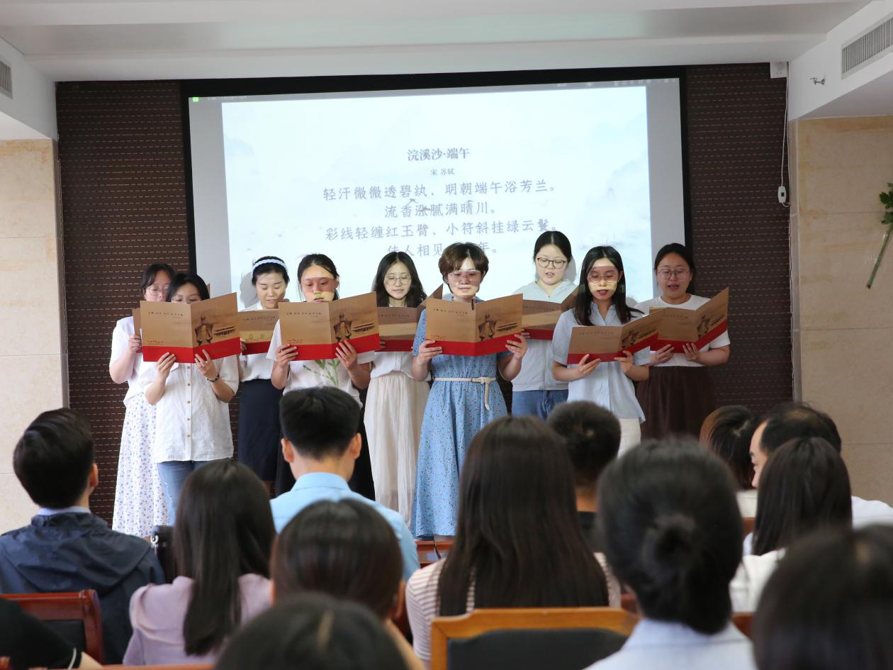 青年干部通过观看短视频,了解端午的由来及民俗,感受传统节日文化内涵,感悟屈原深厚执着的爱国情愫。4个青年理论学习小组经过精心准备,以饱满的热情、真挚的情感朗诵了《屈原列传》《浣溪沙·端午》《过汨罗江感怀》《我的粽子·始终》等端午节诗词。铿锵有力的语调、饱含深情的诗句,充满着对爱国诗人屈原的怀念与敬仰,也诠释了中华诗词蕴含的丰富思想精神内涵和爱国情怀。慷慨激昂的朗诵声中,伟大爱国诗人屈原忧国忧民的家国情怀、舍身取义的深情大爱,激发了广大青年干部爱国爱家的热情。活动最后,大家一起动手,现场制作粽子。青年干部都是第一次亲手尝试包粽子,体验端午传统民俗,感受中华优秀传统文化的迷人魅力。