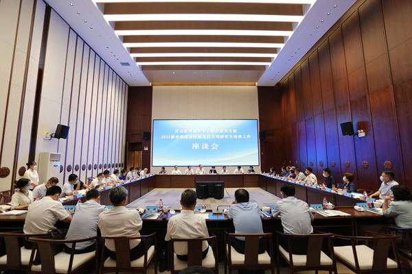 8月16日下午,尼山世界儒学中心联合研究生院在山东省邹城市召开“中华优秀传统文化专项研究生培养工作座谈会”。教育部党组成员、副部长孙尧,山东省副省长孙继业出席会议并讲话。尼山世界儒学中心理事会理事长、联合研究生院院长靳诺主持会议。教育部发展规划司司长、尼山世界儒学中心理事会副理事长刘昌亚,尼山世界儒学中心党委书记、副主任、理事会副理事长兼秘书长国承彦作发言。联合研究生院秘书长、中国人民大学哲学院院长臧峰宇作工作汇报。