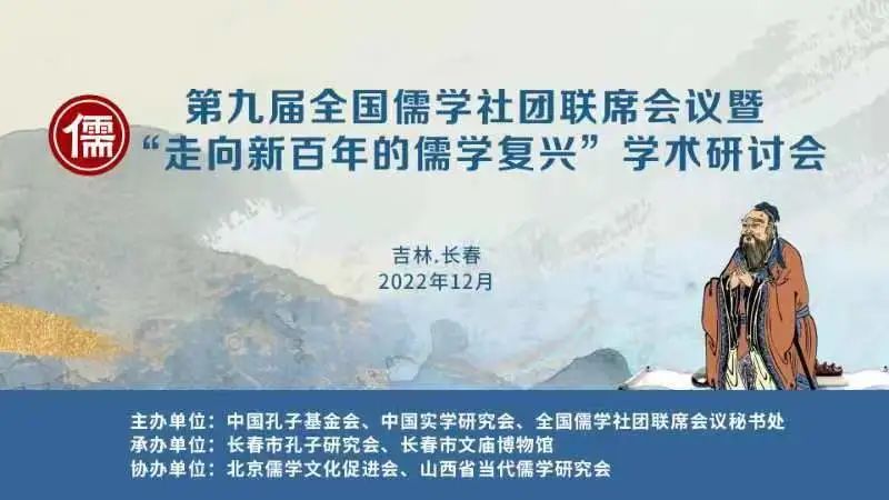 12月18日,第九届全国儒学社团联席会议暨“走向新百年的儒学复兴”学术研讨会在腾讯会议以线上的形式成功召开。本次会议由中国孔子基金会、中国实学研究会、全国儒学社团联席会议秘书处主办,长春市孔子研究会、长春市文庙博物馆承办,北京儒学文化促进会、山西省当代儒学研究会协办。