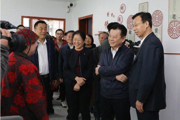 仪式结束后,于晓明一行来到槐荫区玉清湖街道新庞村幸福食堂,实地察看食堂的硬件设施,与准备就餐的老人们热情交谈,仔细询问老人的生活状态,了解食堂的饭菜质量,充分肯定幸福食堂开展的各项工作。还与食堂志愿者亲切交流,对她们的工作给予勉励。