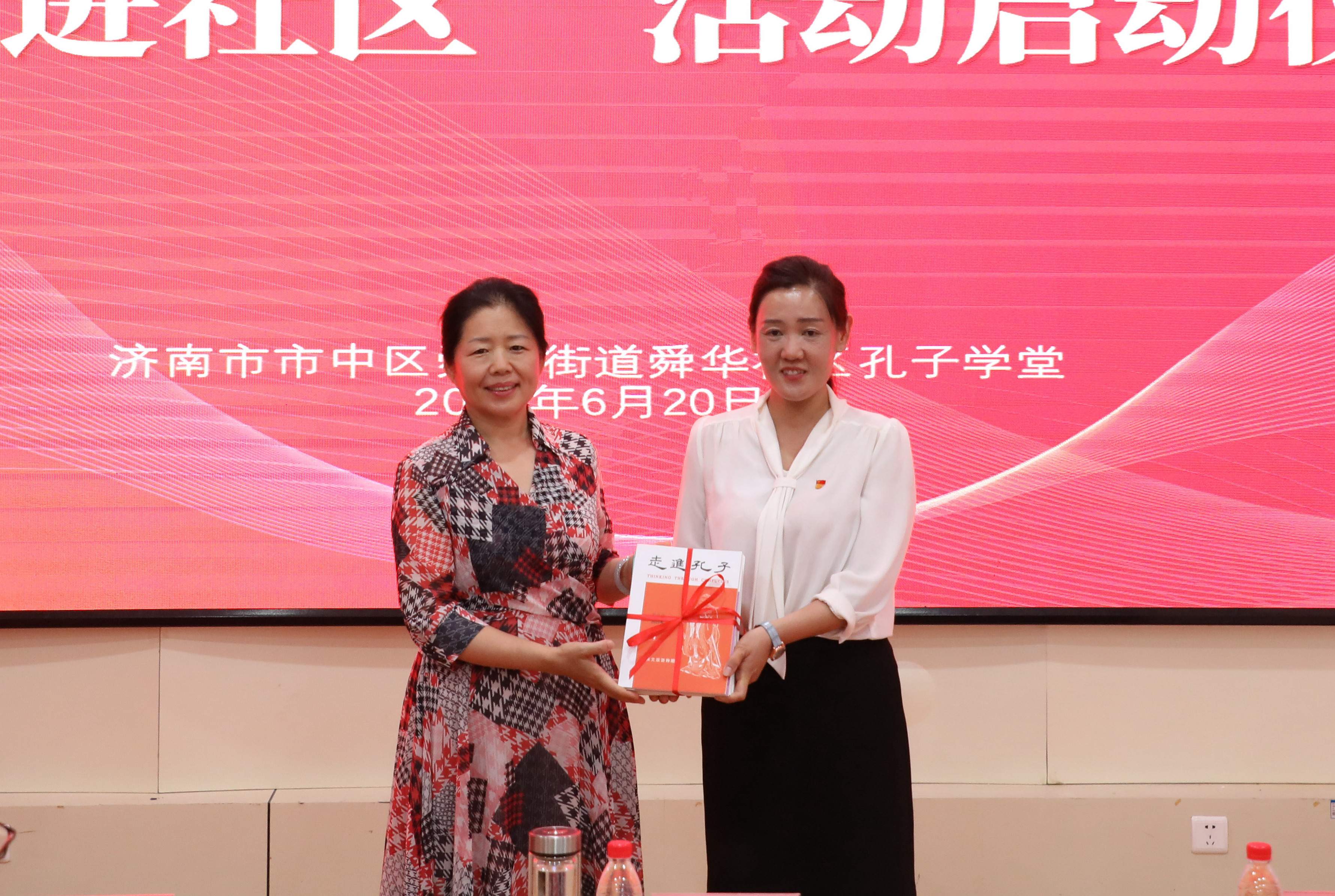 尼山世界儒学中心(中国孔子基金会秘书处)党委书记、副主任,中国孔子基金会副理事长、秘书长国承彦出席活动,并向舜华社区赠送国学书刊,为首批获聘“儒学中心青年志愿讲师”的青年干部颁发聘书。