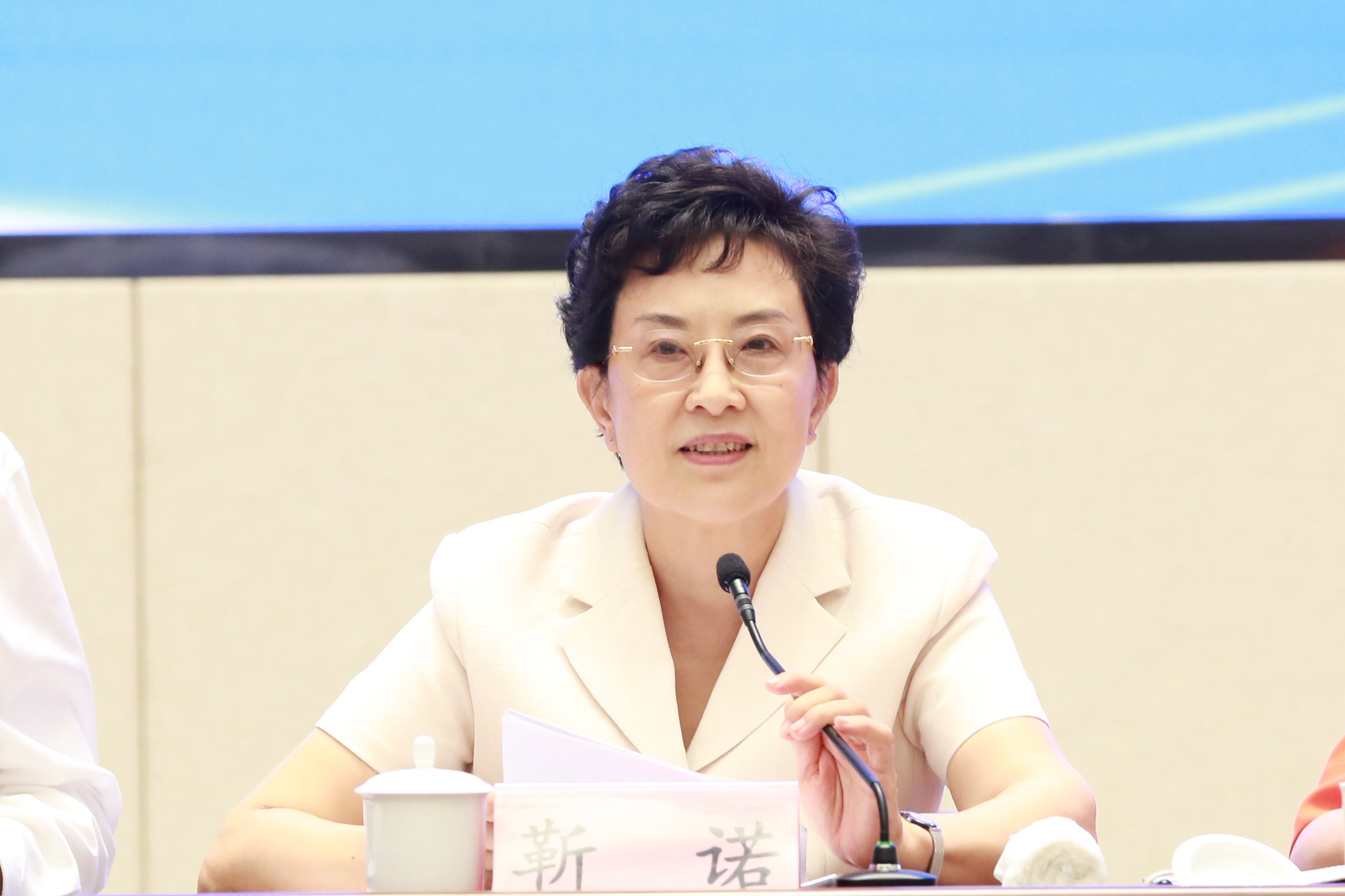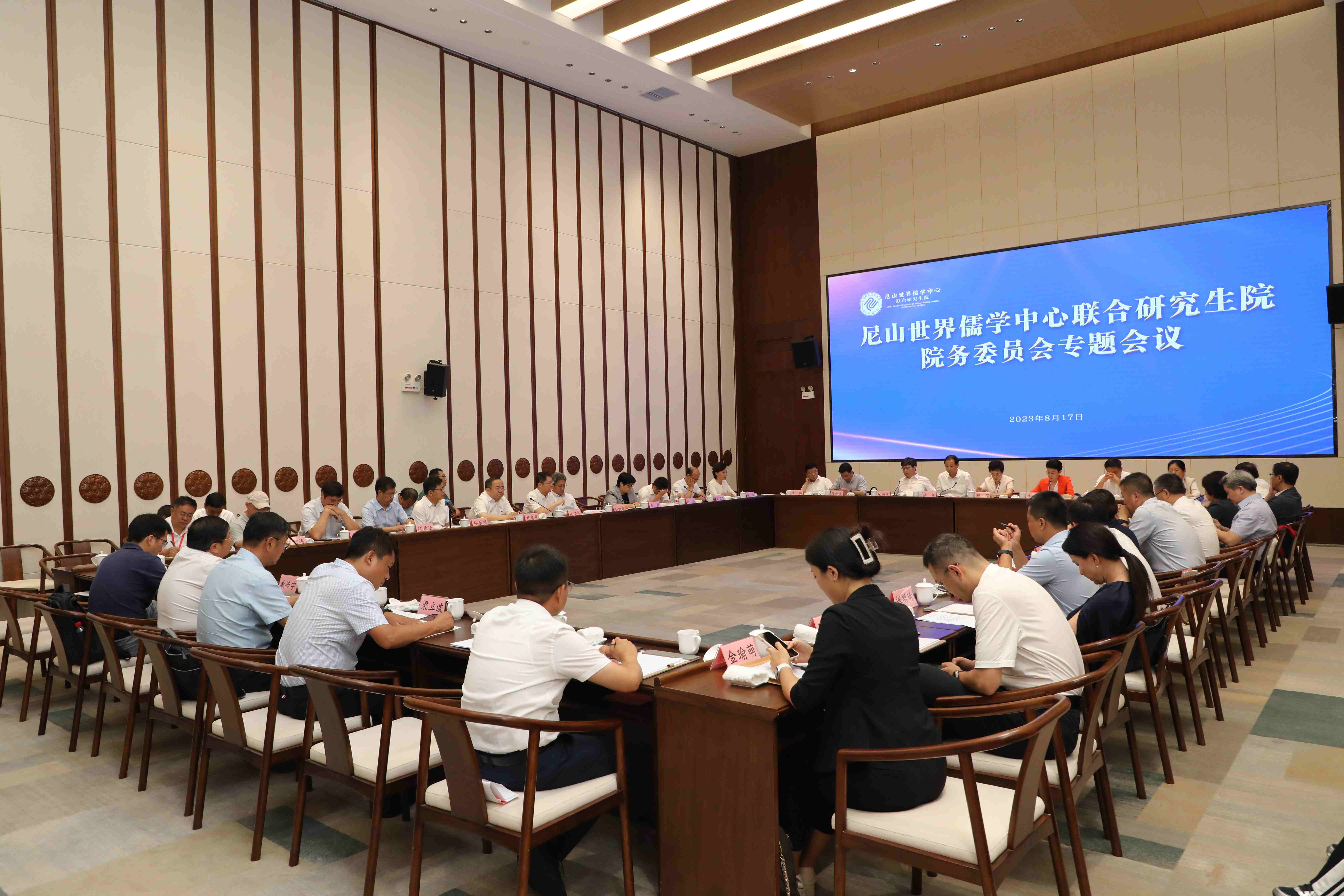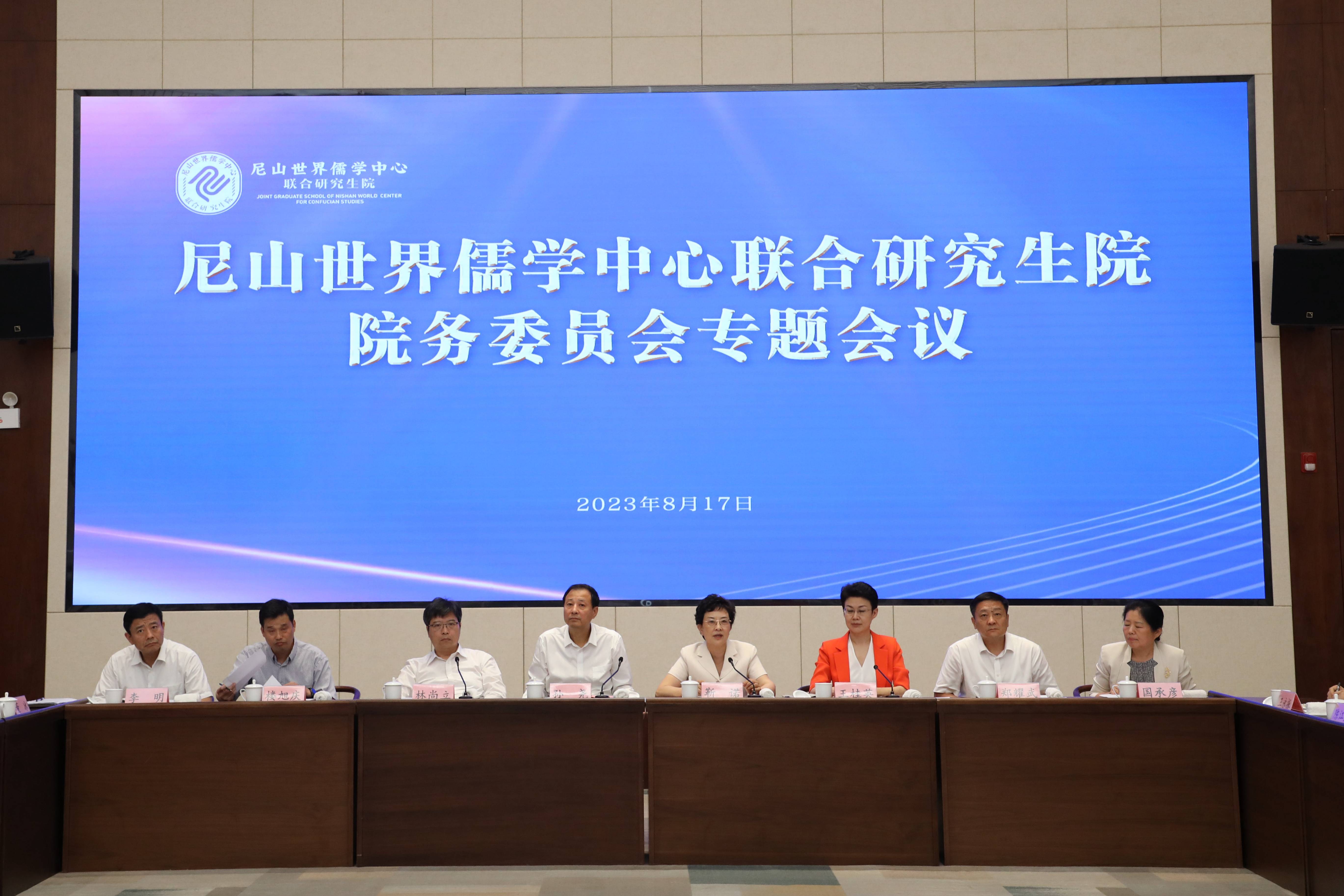 为深入贯彻党的二十大精神,贯彻落实习近平总书记在文化传承发展座谈会上的重要讲话精神,扎实推进联合研究生院各项工作顺利开展,进一步完善联合研究生院工作机制,8月17日下午,尼山世界儒学中心联合研究生院院务委员会专题会议在山东邹城召开。教育部党组成员、副部长孙尧,中国人民大学校长、党委副书记,尼山世界儒学中心理事会常务副理事长、联合研究生院学术委员会主任林尚立,山东省副省长王桂英出席会议并讲话。尼山世界儒学中心理事会理事长、联合研究生院院长靳诺主持会议。联合研究生院秘书长、中国人民大学哲学院院长臧峰宇作工作汇报。
