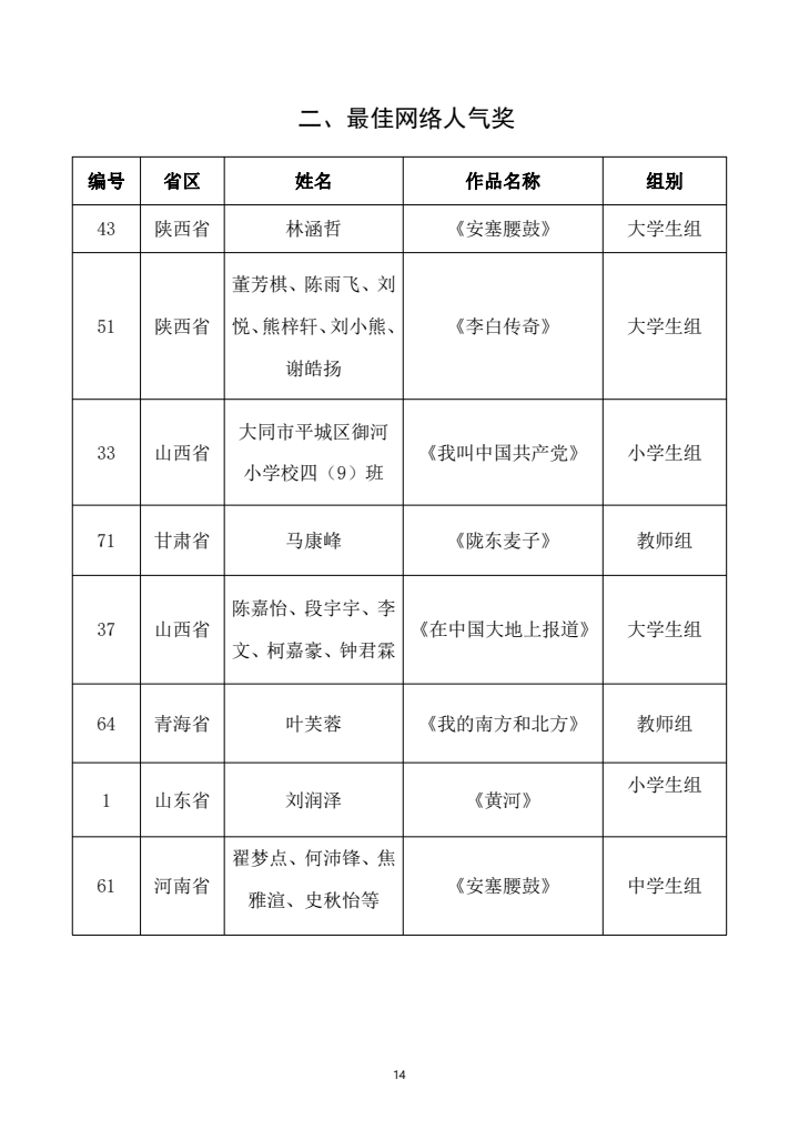 现公布获奖名单如下。