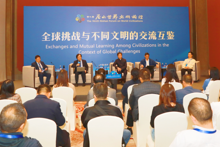 9月27日,第九届尼山世界文明论坛第二场高端对话在曲阜尼山讲堂举行。王志民、郭沂、龚良、向世陵、解光宇等五位学者,聚焦“全球挑战与不同文明交流互鉴”这一主题,说古论今,开展文明对话。