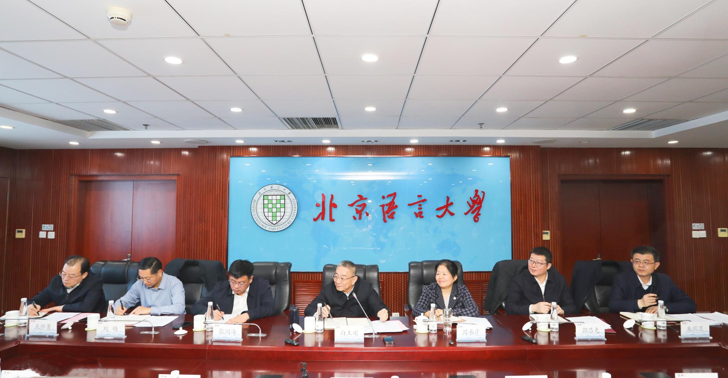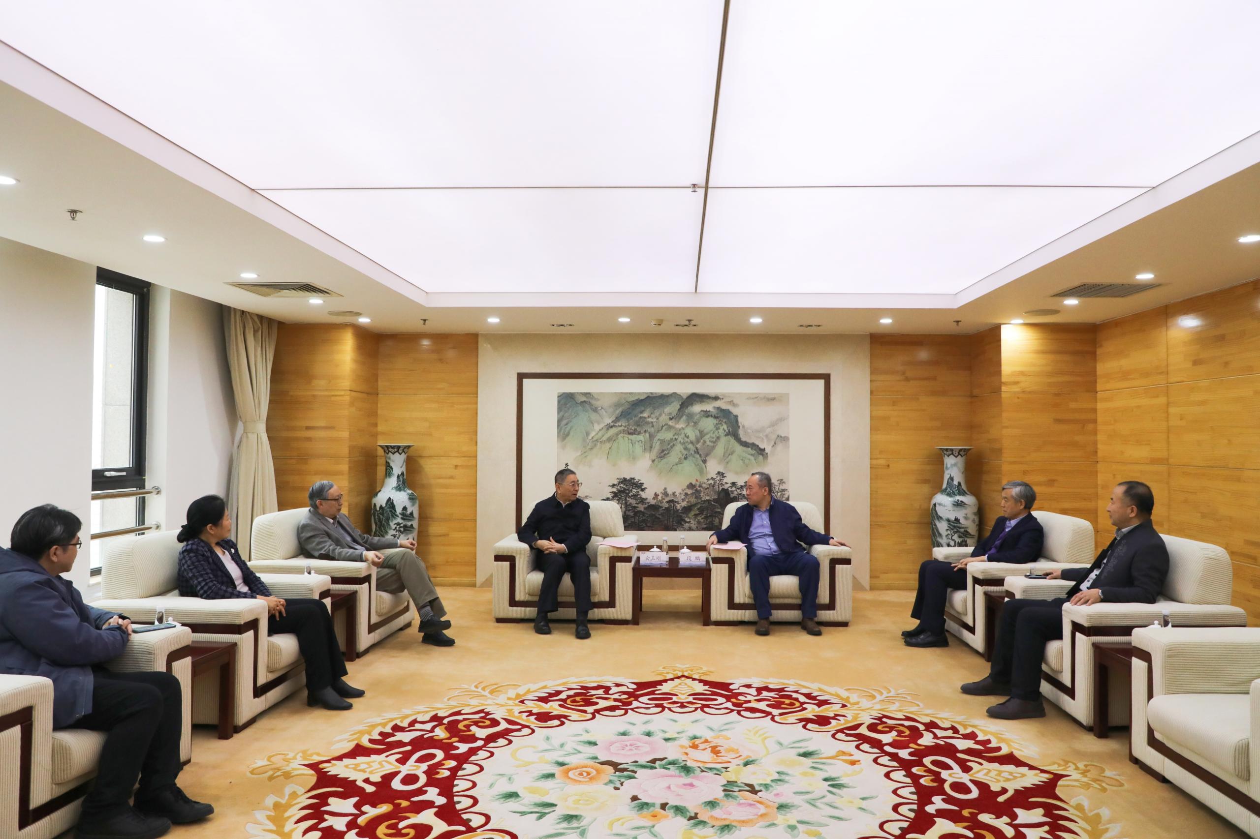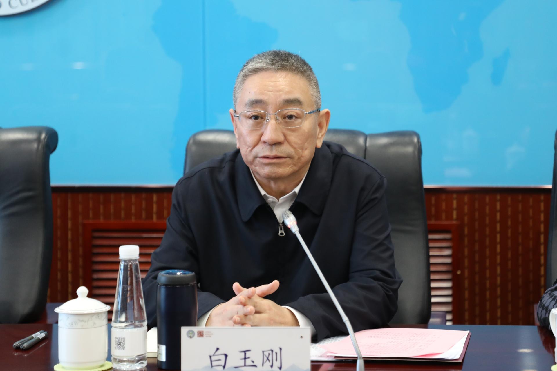 恳谈会前,白玉刚与北京语言大学党委副书记、校长段鹏会谈,双方围绕深化合作,共同推动儒学国际传播进行交流。