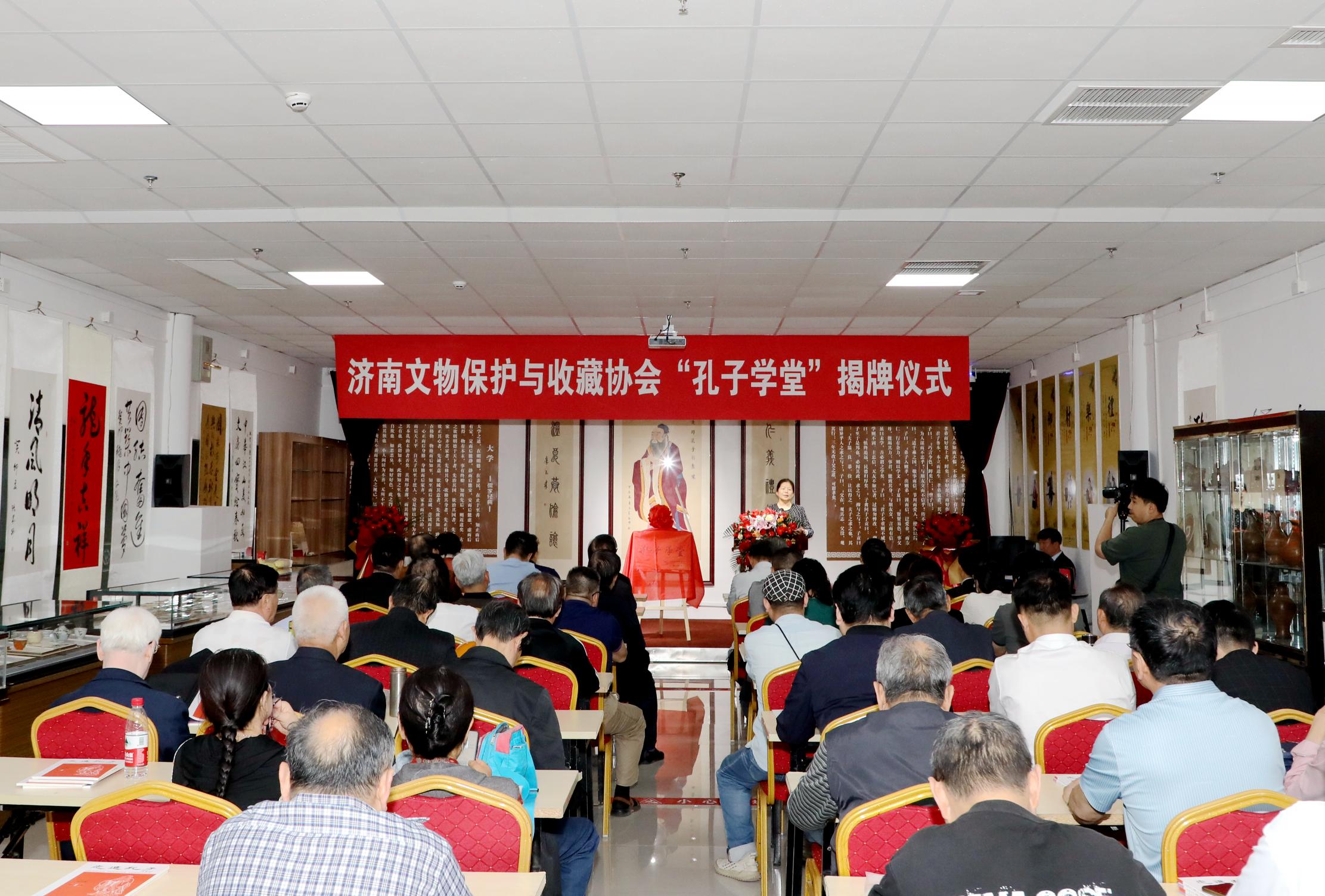 山东省政协原副主席雷建国,中共济南市委原常委、济南警备区原政委晋争鸣,尼山世界儒学中心(中国孔子基金会秘书处)党委委员、副秘书长,中国孔子基金会孔子学堂推进委员会主任周静,济南市文化和旅游局副局长郭象峥,济南文物保护与收藏协会会长李吉乾出席活动。济南文物保护与收藏协会副会长丛培军主持揭牌仪式。