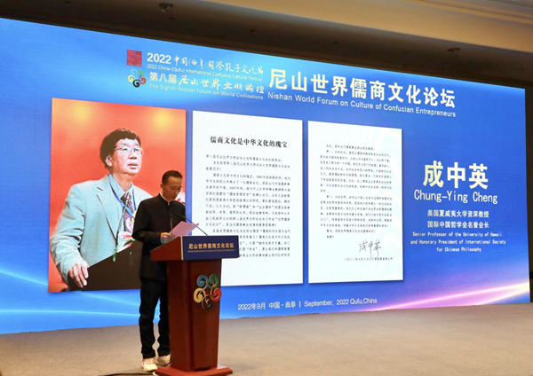 成中英在贺信中开门见山地表示,第八届尼山世界文明论坛增设首届“世界儒商文化论坛”,是当代儒商事业发展的重要里程碑。儒商文化是中华文化的瑰宝,当代企业家在积极承担社会使命,让儒商精神注入社会的同时,要让中国人创造与治理的智慧及其成果为世界所接受和共享,以儒商精神成风化人,滋养世界。